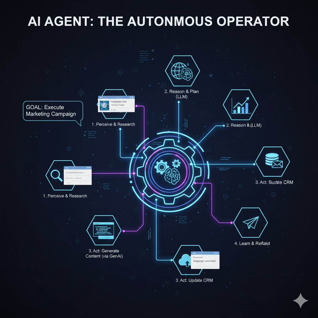 💡 핵심: AI 에이전트는 '이 목표를 달성하기 위해 어떤 행동을 취해야 할까?'에 집중하며, 생성형 AI는 이 행동을 위한 '창의적 구성 요소' 중 하나일 뿐입니다.