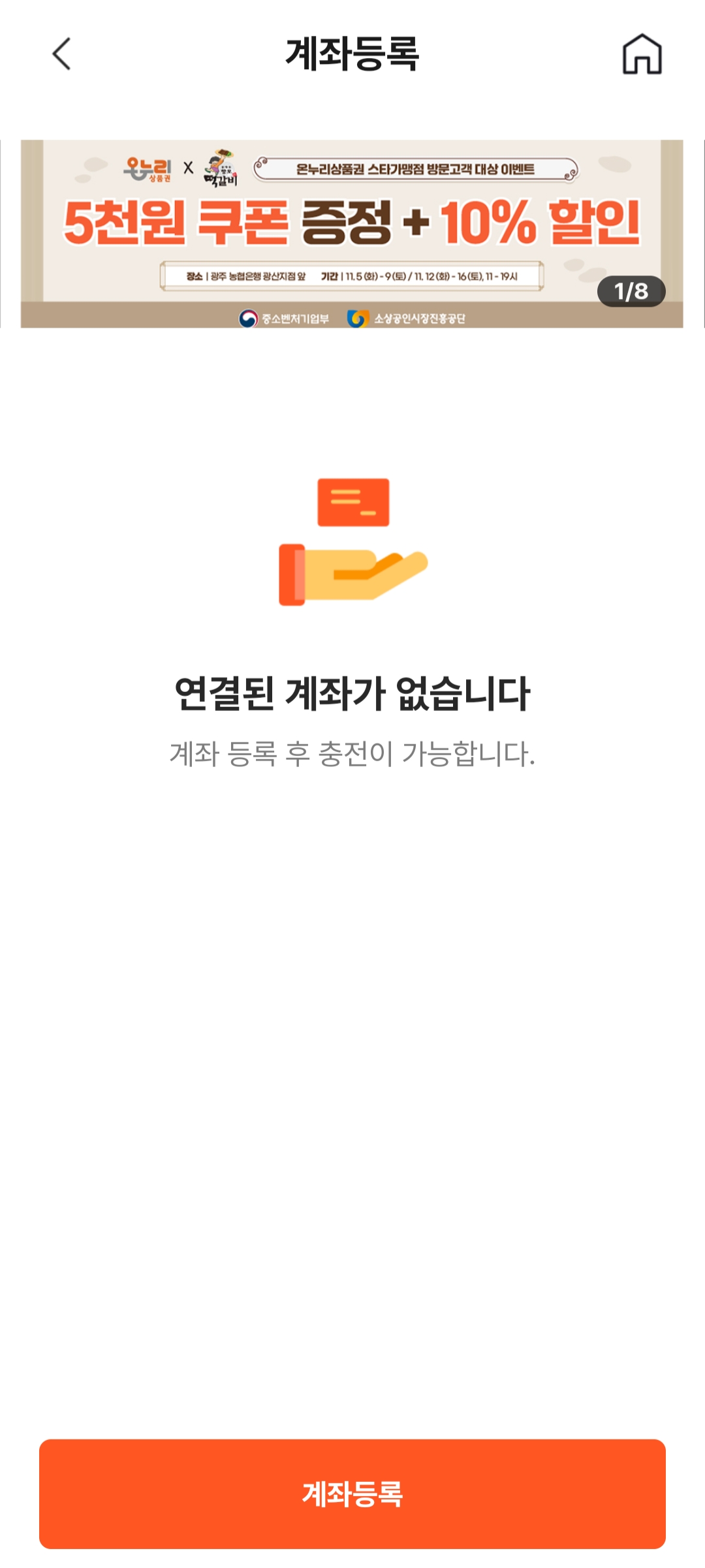 3. 온누리상품권을 구매할 계좌와 사용할 카드를 등록해요.
